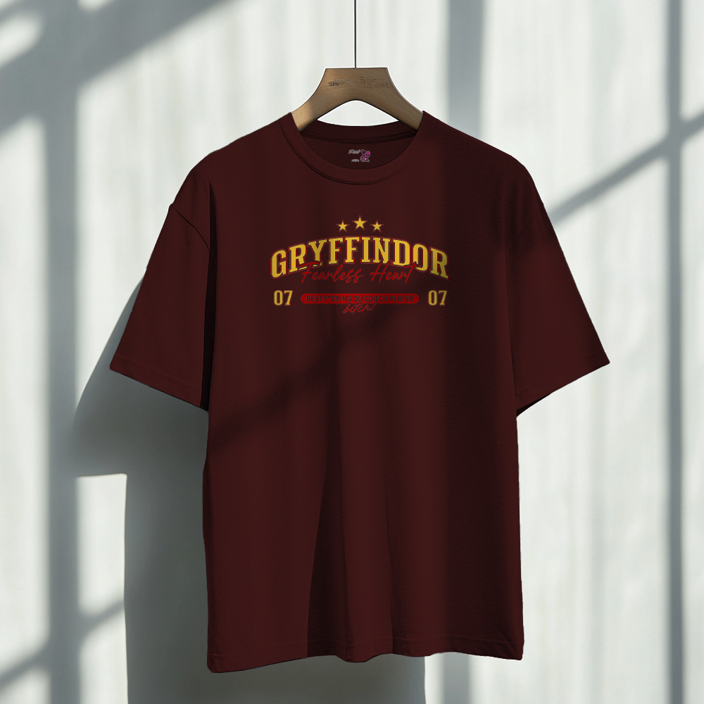 Un polera fresca, color burdeo, con una de tus casas favoritas en el pecho <3