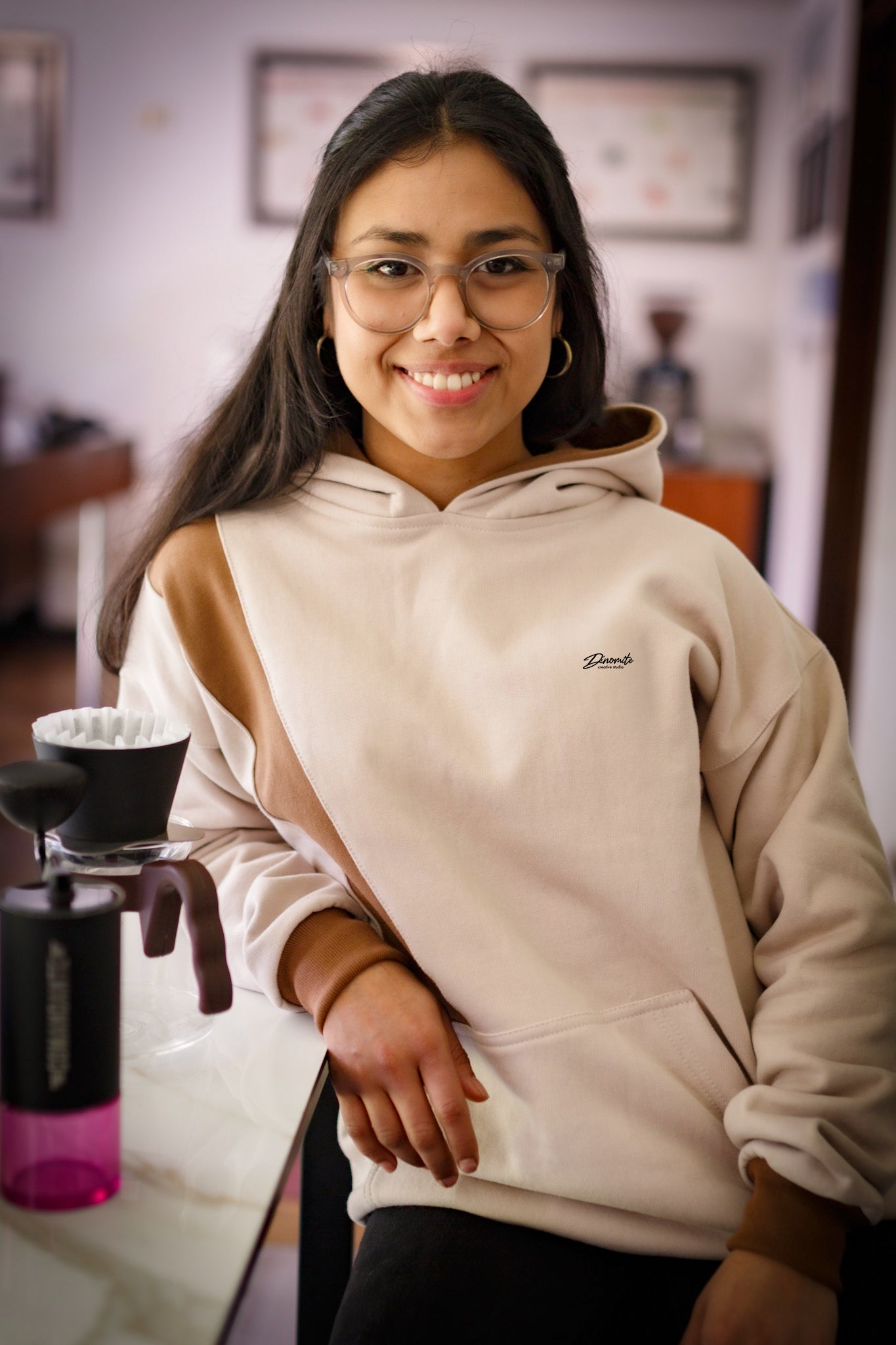 Únete a este homenaje, nuestro poleron "Latte" el cual tiene un color beige con franjas cafés.
